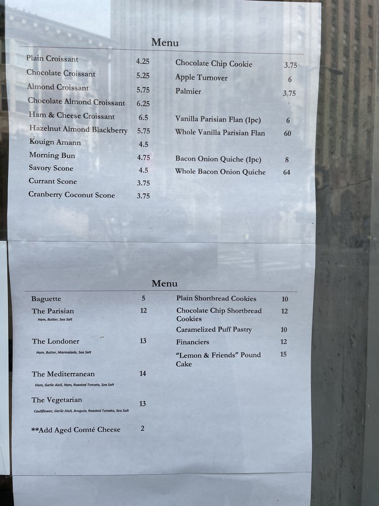 “ Hello, welcome to my review! I highly recommend these croissants. For my sweet lovers get the chocolate almond. Savory the regular croissant is flaky and amazing. Parking might be hard since it's the city. Interior seating is 10-15 spaces. Quick and easy service. Thank you! ”