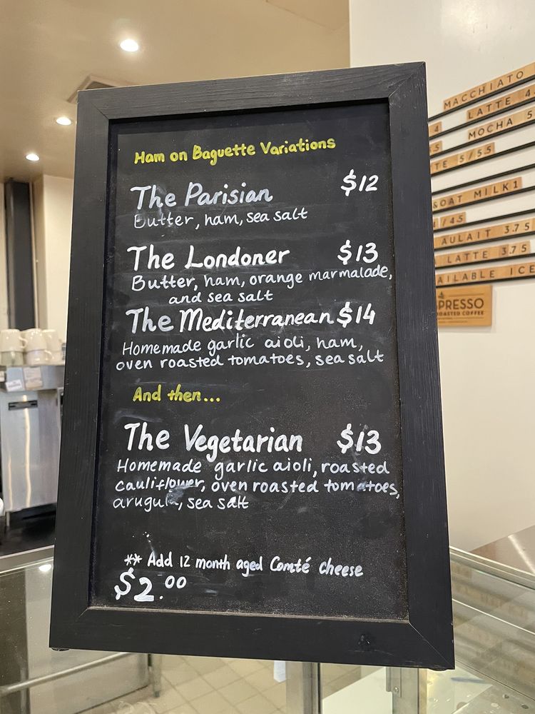 “ Honestly kinda worth going to this location since there was basically no wait and plenty of seating compared to the OG location. It's kinda funny because the first time I went to the OG location they ONLY had ham+cheese croissants left and this location was sold out of that one. I really liked the caramelized pasty bits. They were puff pastry sticks that were coated in a sugar syrup? The pastry was super flaky and crispy and the coating was just sweet enough. It kind of reminded me of the flavours of a palmier, which I absolutely love. ”